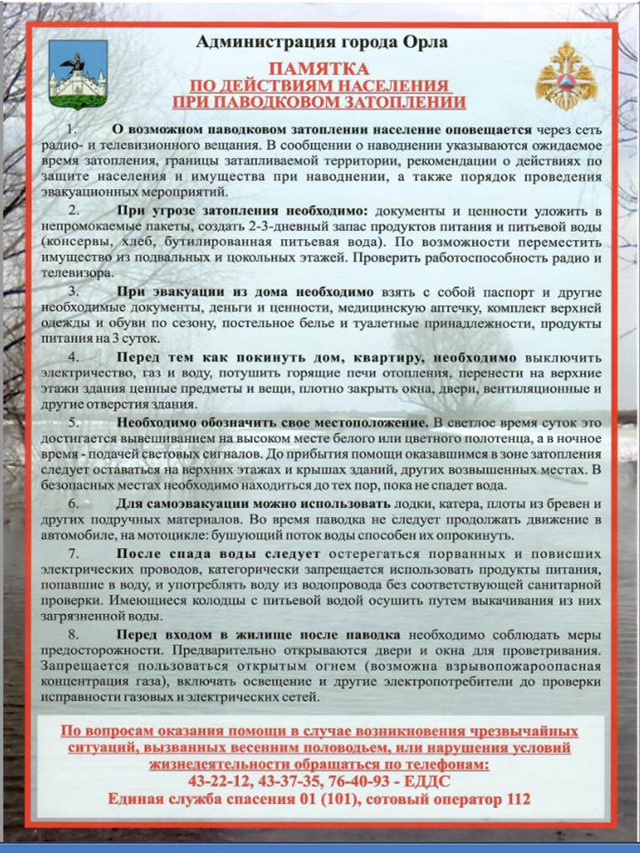 памятки о действиях в случае наводнений и весенних паводков
